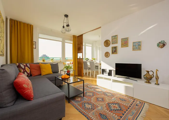 Autumn Apartment With Balcony And Two Bedrooms By Renters Warszawa o powierzchni 48 m^2 jest usytuowany w dzielnicy Mokotów, w odległości 15 min spacerem od stacji metra Politechnika. Apartament dysponuje tarasem z widokiem na miasto.